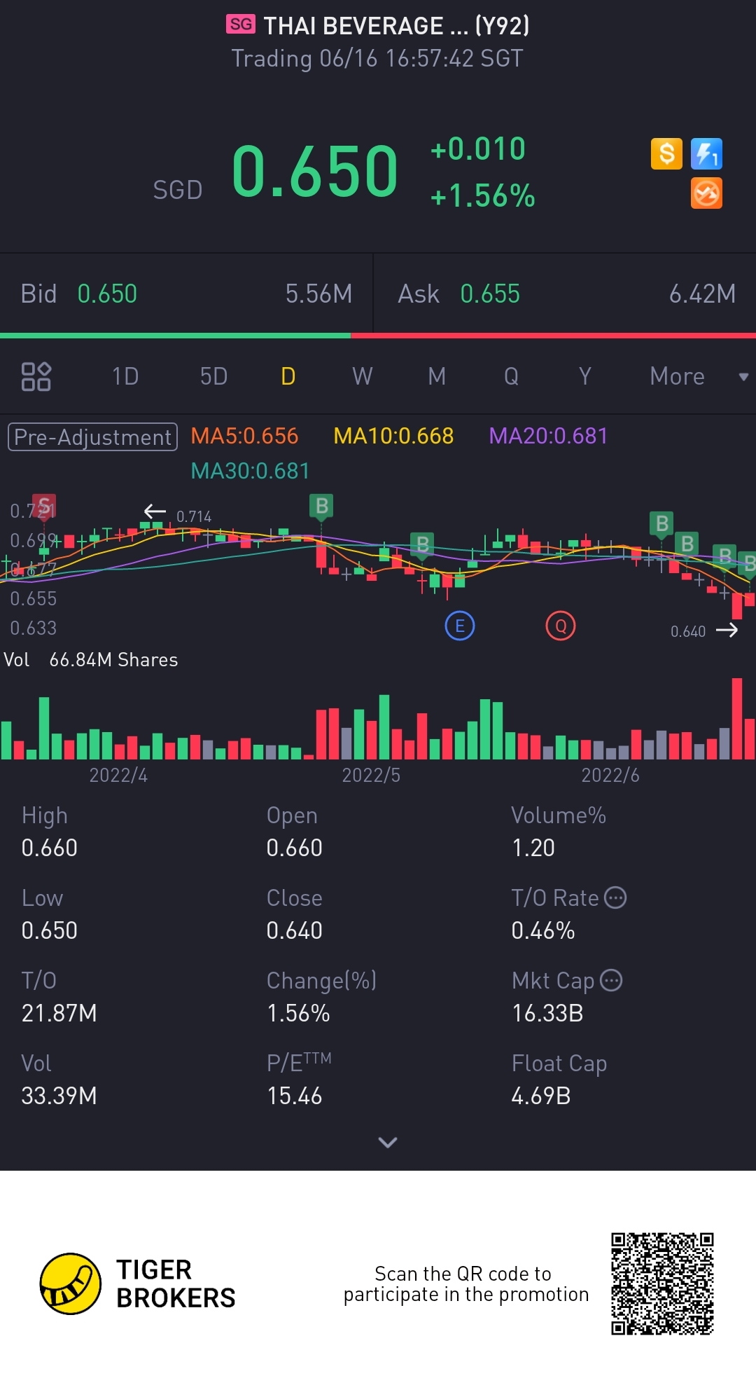 $THAI BEVERAGE PUBLIC CO LTD(Y92.SI)$beer co received eligibility to list but thaibev advised to not speculate... 650 looks like a good entry price though