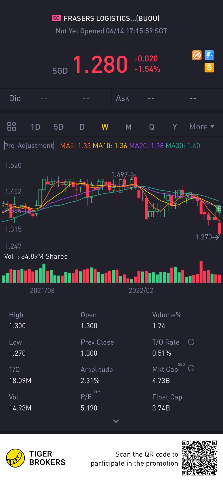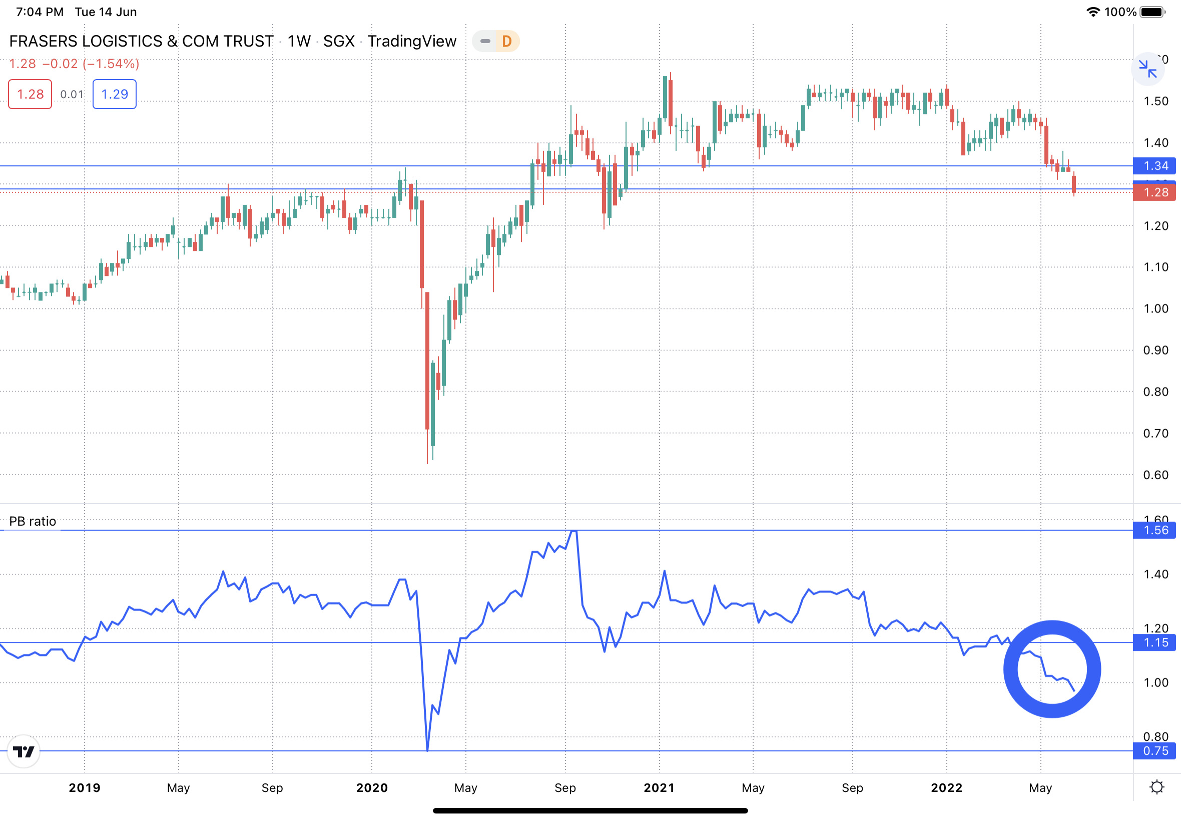 $FRASERS LOGISTICS & IND TRUST(BUOU.SI)$is finally in my hand. Thanks to all Who encouraged me to buy last week.đ I waitedfor 2 month to buy my first part.đ. Many posts and article talk about it. I also do my research. It has consistent growth of gross revenue, NPI and DPU etc. 5 years long term trend is still stable. Attractive dividend yield. Iflooking at 5 year long term price to book ratio trend, average value is about 1.15. Currently PB is 0.97, which is less than not only 1.15but also 1. Very attractive! đ
