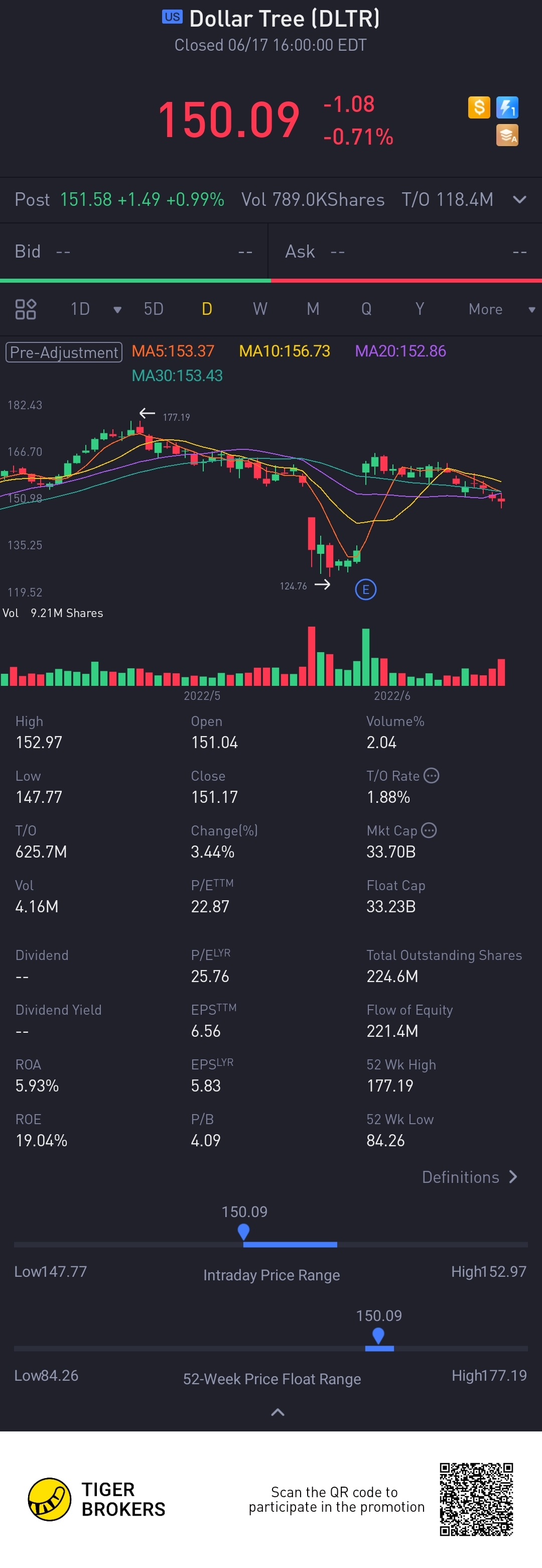 $Dollar Tree(DLTR)$as fears and possibility of a recession loom, and inflation hits us hard, putting our money in value stocks is a way to protect the value of our money. Dollar Tree is a good company to put our money in during such a time because it appeals to consumers seeking value for money purchases, which is particularly attractive in a recession and period of high inflation.