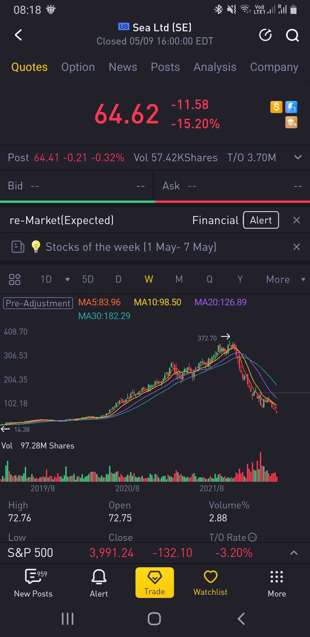 Large correction to SEA stock price recent caught many off guard. Can this stock regain its ground anytime soon? The business of e-commerce seem less attractive nowadays with reopen after COVID lock down in the past....ppl are coming out to buy what they need in shops or malls... maybe the new business in e-Banking license could help them but may not be in any near term. Still need to be patient for investor whom already in it.