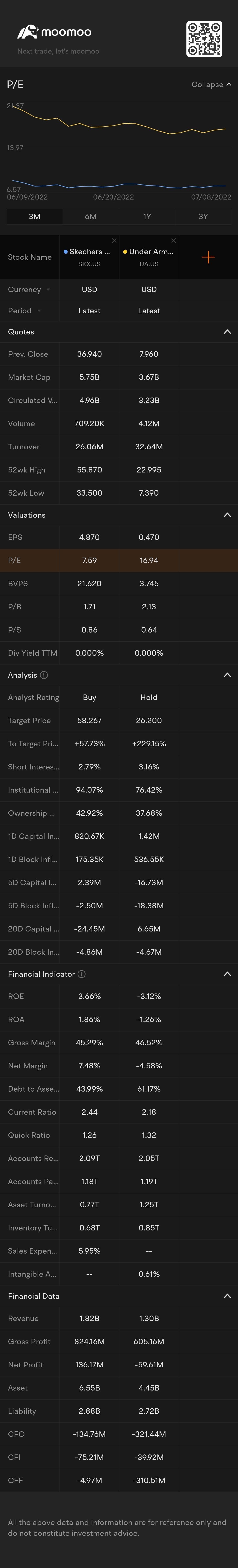#Time to monitor $Skechers USA(SKX)$ and $Under Armour(UA)$