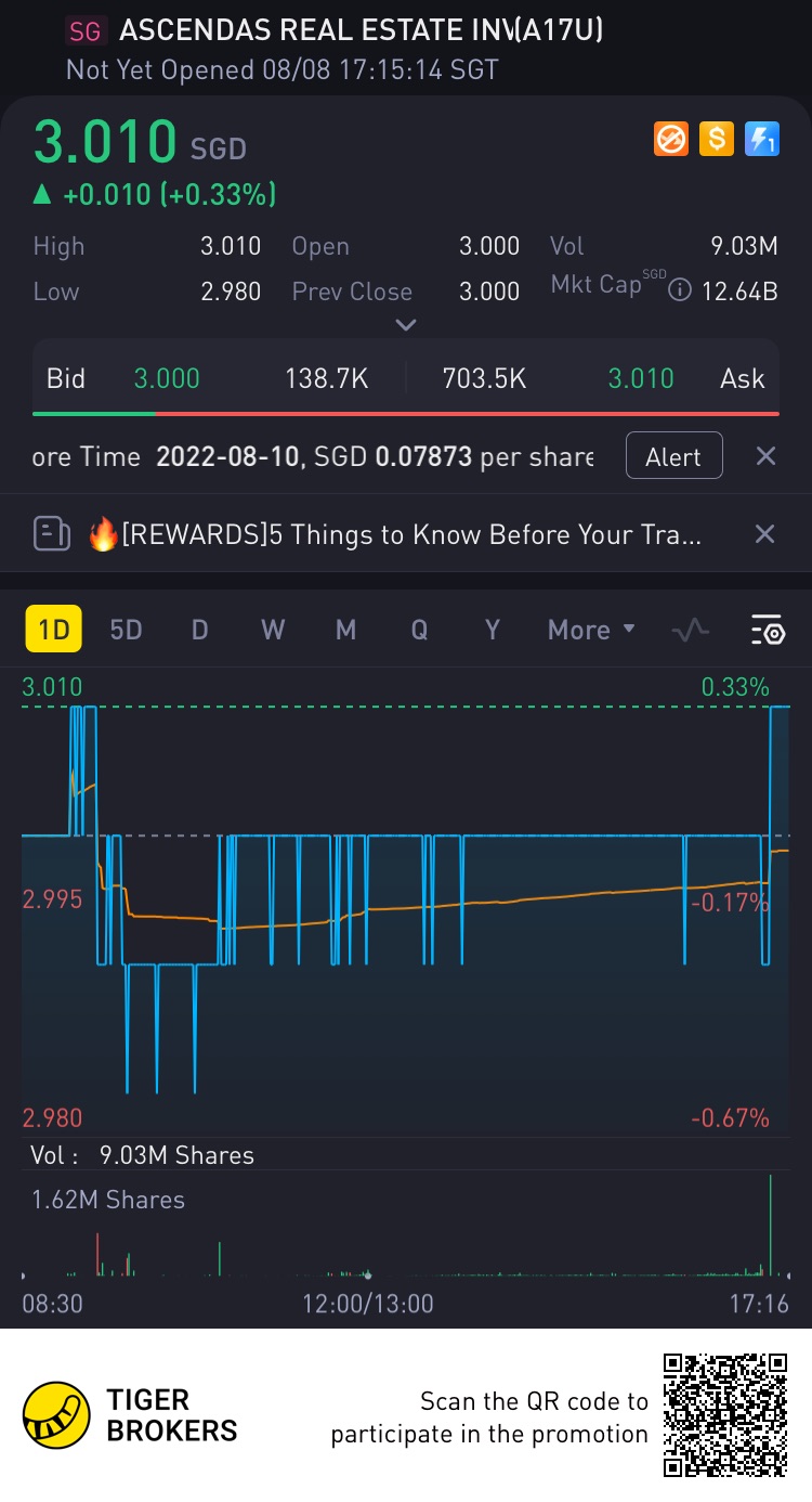 $ASCENDAS REAL ESTATE INV TRUST(A17U.SI)$View on ASCENDAS REAL ESTATE INV TRUST(A17U.SI)BullishBearish[Strong]