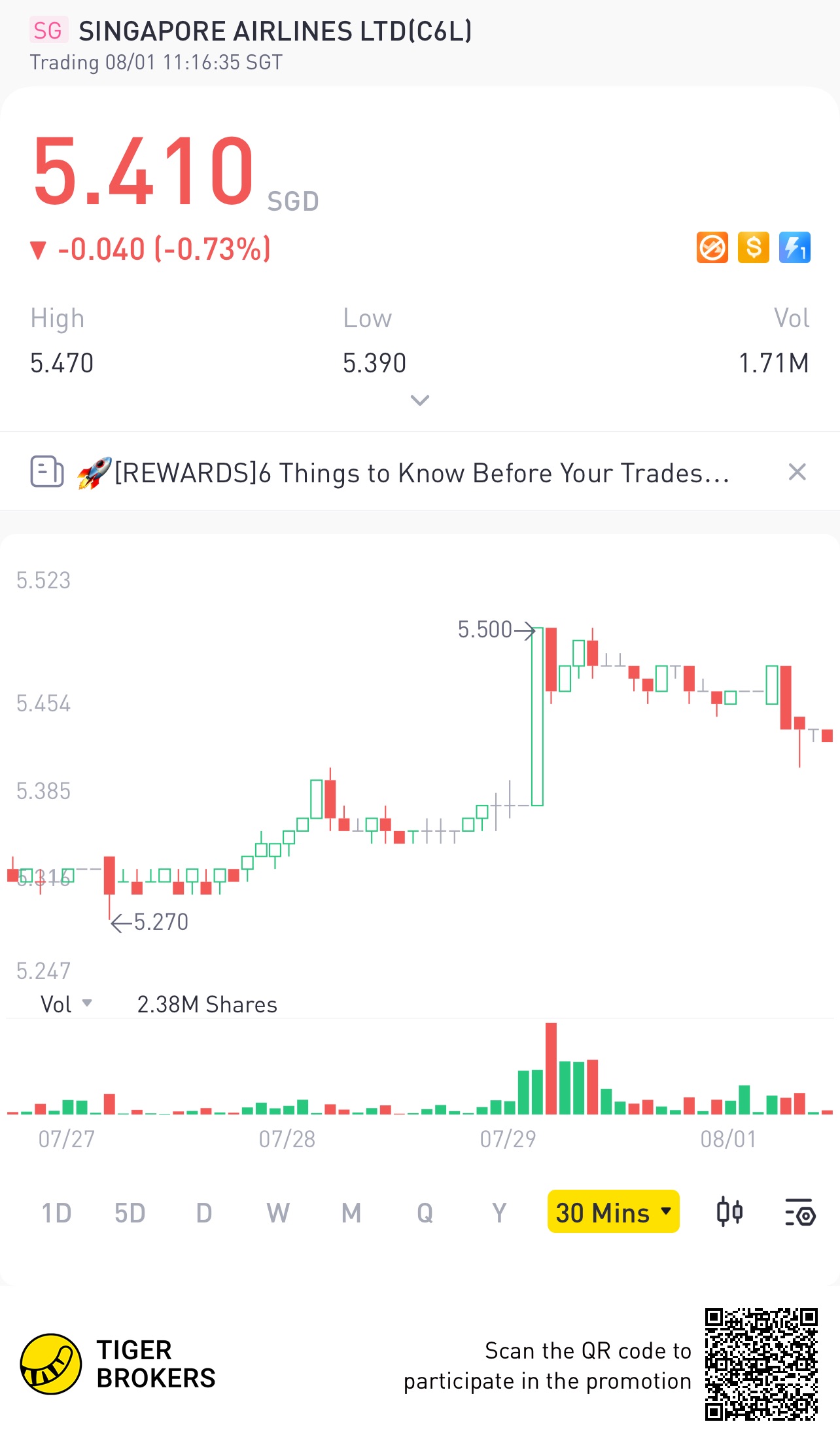 $SINGAPORE AIRLINES LTD(C6L.SI)$👍