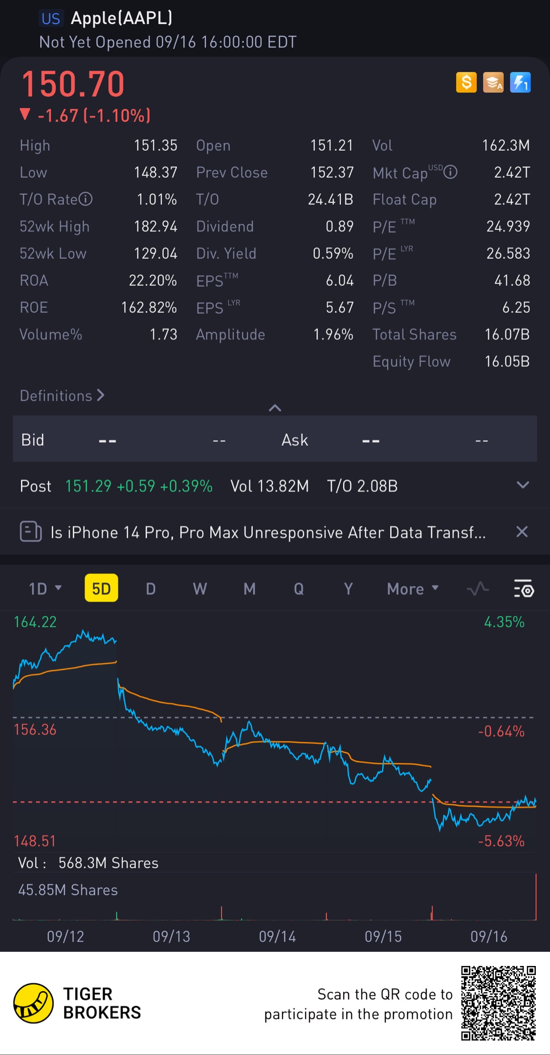 $Apple(AAPL)$Coming down