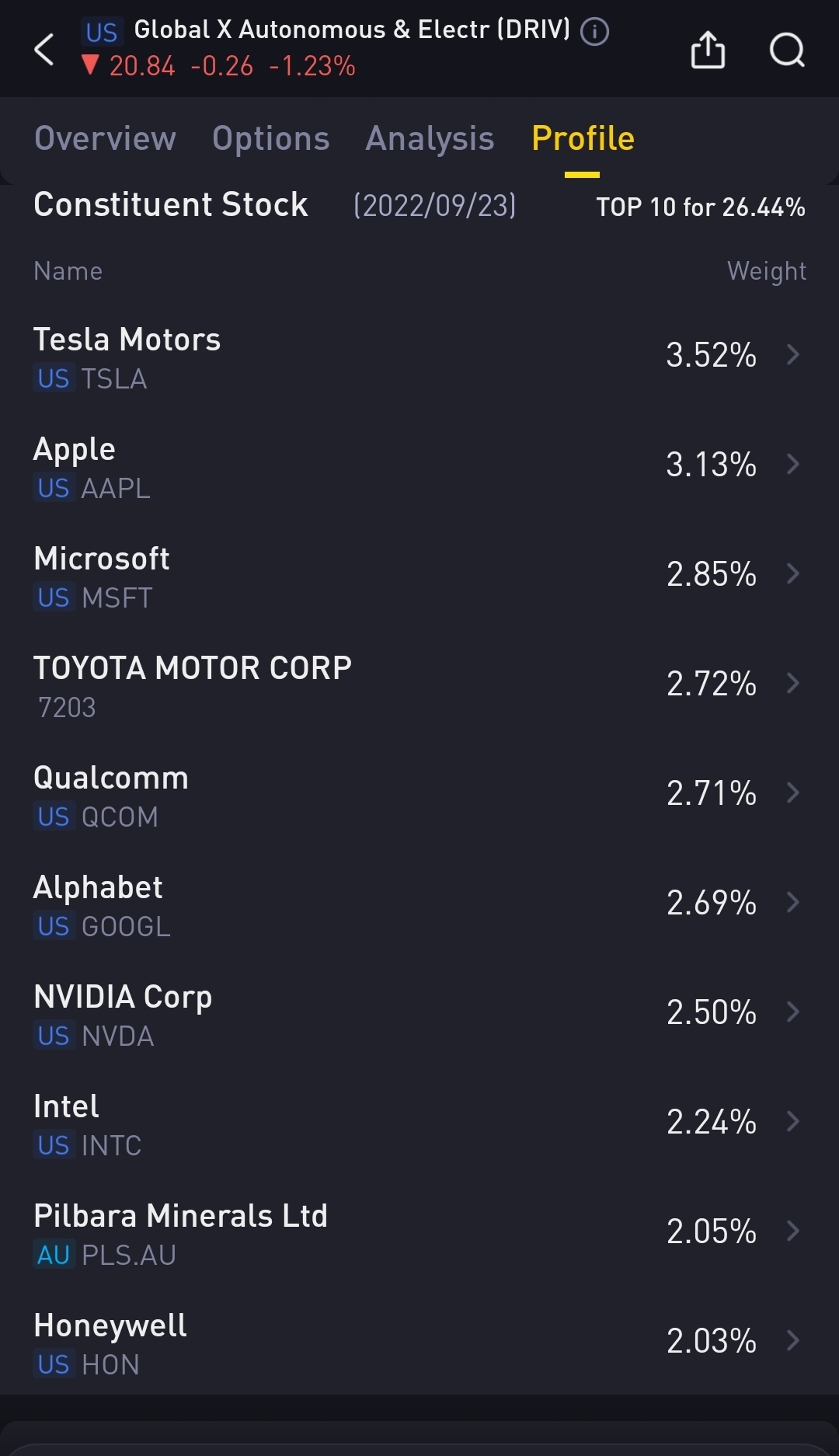 $Global X Autonomous & Electric Vehicles ETF(DRIV)$If one likes and believes EVs and Big US profitable megatech companies are the future. Some companies in this budget friendly etf are also beneficiary of clean energy transitions by biden climate change and semi conductor spending bill too. Long term hold for the future. Good diversifier across many US based profitable companies so as to diversify away from single stock risk. Just sharing ideas. it's volatile in the market now due to rising rates so do your own due diligence. $XPeng Inc.(XPEV)$$NIO Inc.(NIO)$View on NIO Inc.(NIO)BullishBearish