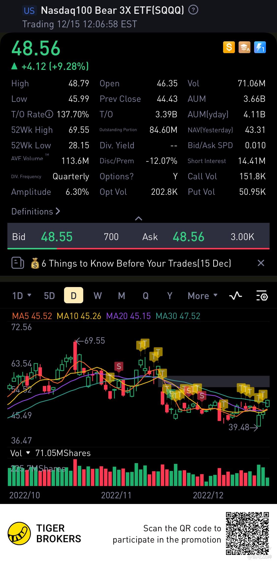 $Nasdaq100 Bear 3X ETF(SQQQ)$ Just sold this guy. Everyday 3% I dare to hold over 10% makes me afraid