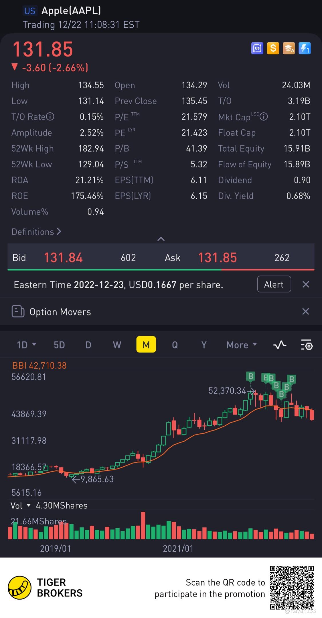$Apple(AAPL)$ up