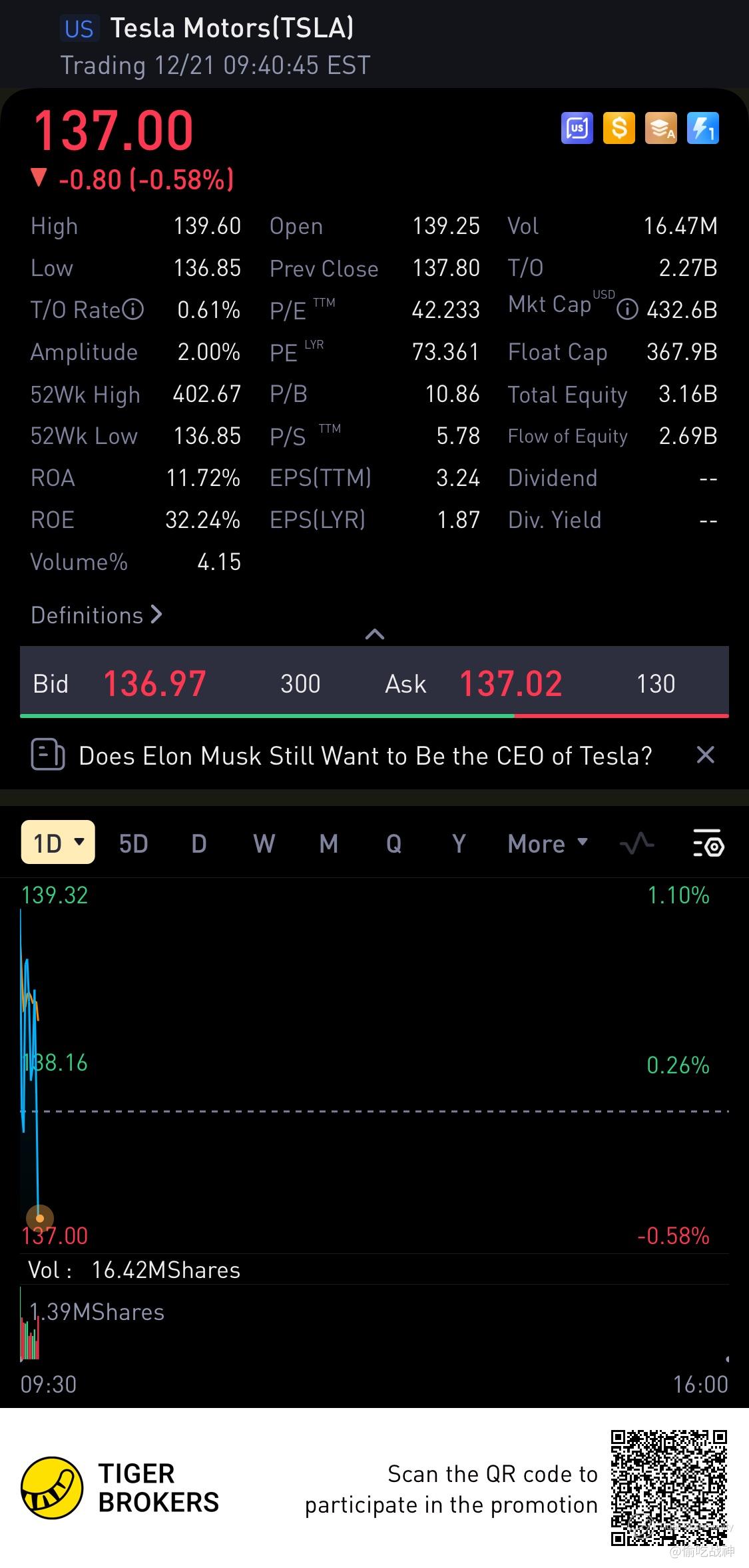 $Tesla Motors(TSLA)$ I love this stock but This Si Ginna really ah.... up n down up n down after 1 year overall profit -75 dollars. Opportunity cost!! throw inside Bear x3 alr millionaire