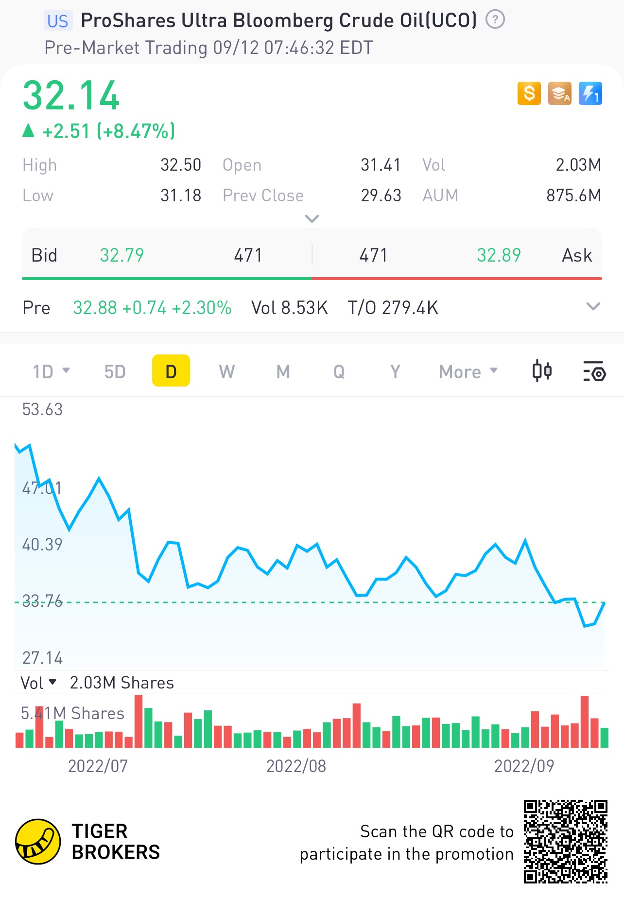 $ProShares Ultra Bloomberg Crude Oil(UCO)$Up
