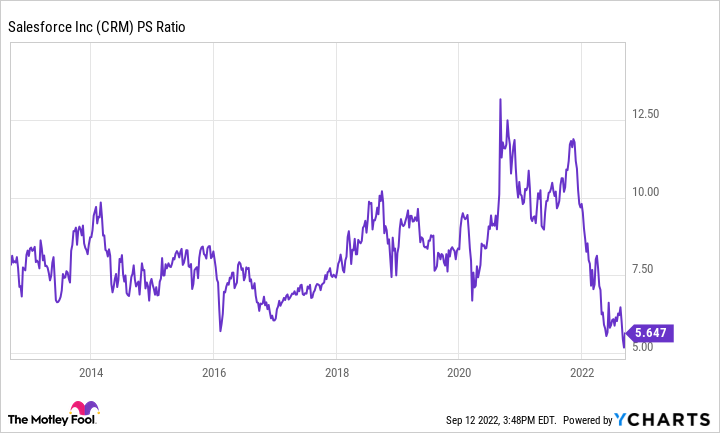 The stock's valuation is much lower than average over its history, but Salesforce isn't as small and nimble as it used to be, slowing its growth. It might be fair that the stock's lower valuation has priced in this potential slowdown in the business, though it's become harder to call the store cheap in the face of slowing growth. Long-term investors can still enjoy Salesforce's trajectory as one of the world's dominant software companies, butinvestors should temper expectations.