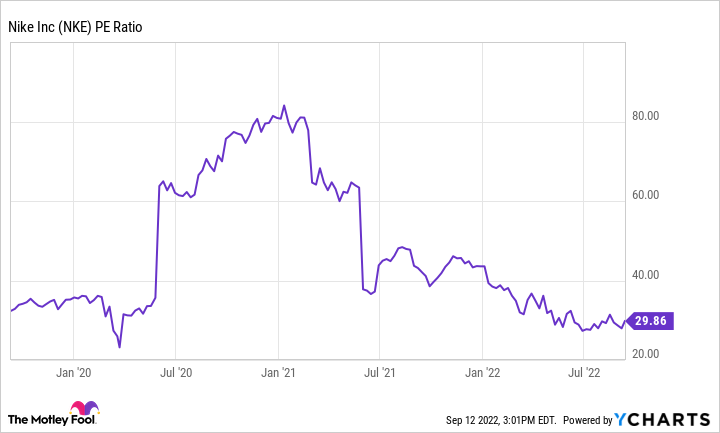 A bear market often means that overvalued stocks like Nike are going to cool off, and it looks like that's what's happening with Nike. The store returning to its historical valuation is good because it can allow the company's growth to drive the stock price. Analysts believe that Nike'searnings per share (EPS)will grow 12% annually over the next three to five years, about the same as the past decade. Given that, one might argue that Nike's historical norms represent near fair value for the stock. In that case, Nike isn't cheap yet, and the stock could still fall further in the short term.