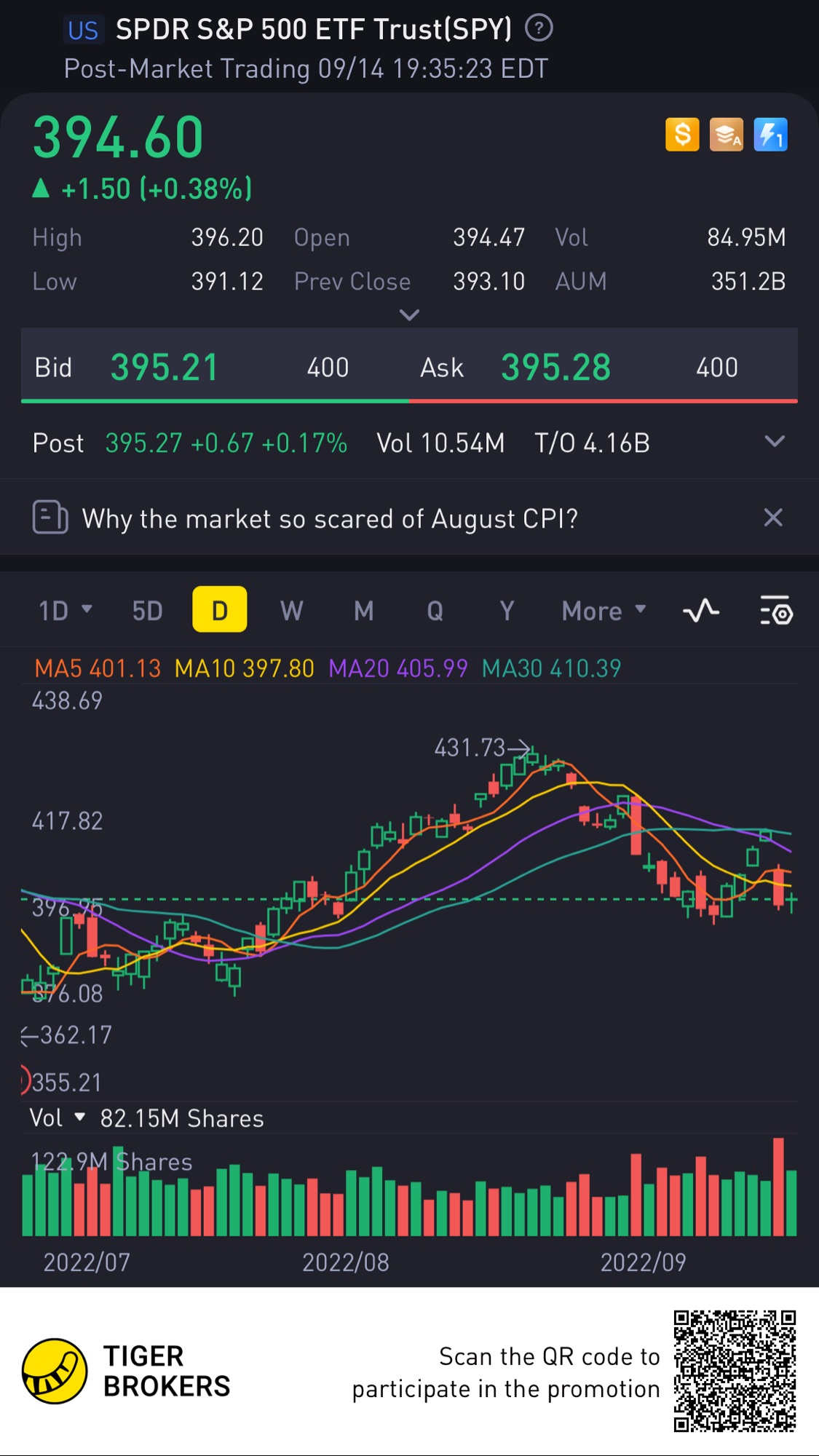 $SPDR S&P 500 ETF Trust(SPY)$Don't be fooled yet. I think this thing still has more down to go because of all the uncertainty. Unless things ease up at Russia and the impacts are felt down the line, we won't see significant upside.