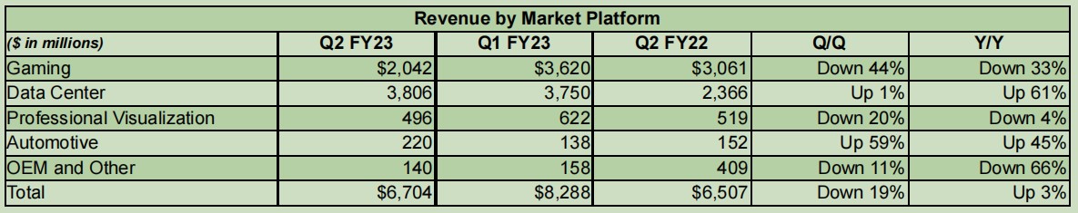 The weak revenue was largely due to the decline in Gaming. Some info from NVDA CFO on the earnings call: