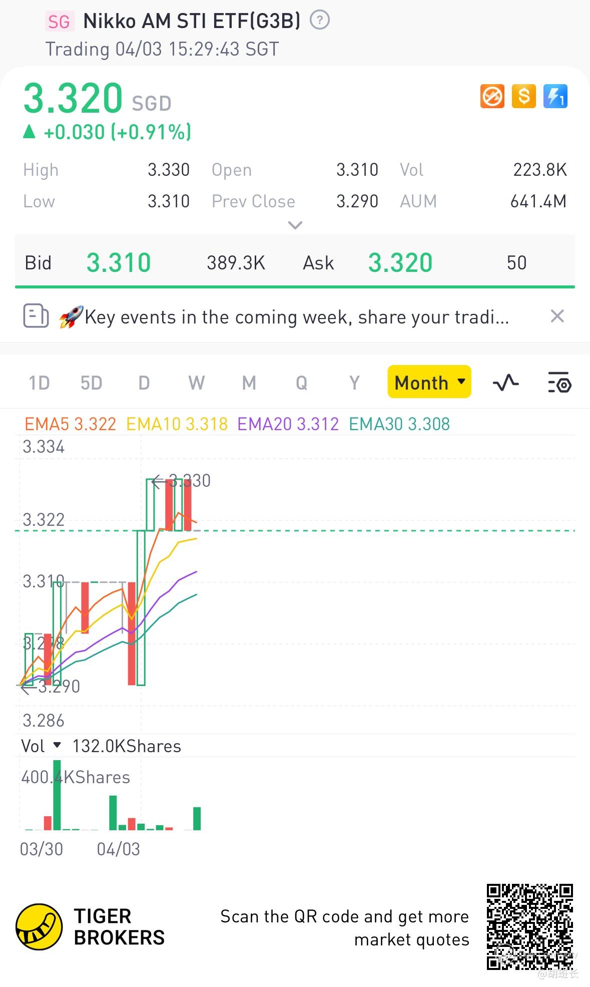 $Nikko AM STI ETF(G3B.SI)$ 1-month high