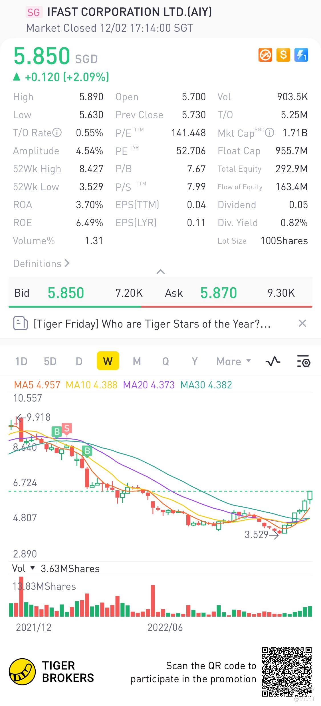 $IFAST CORPORATION LTD.(AIY.SI)$ IFast up more