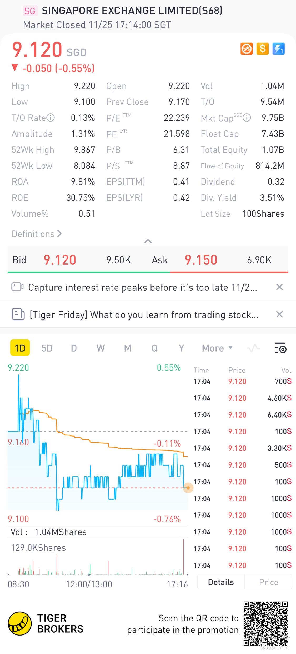 $SINGAPORE EXCHANGE LIMITED(S68.SI)$