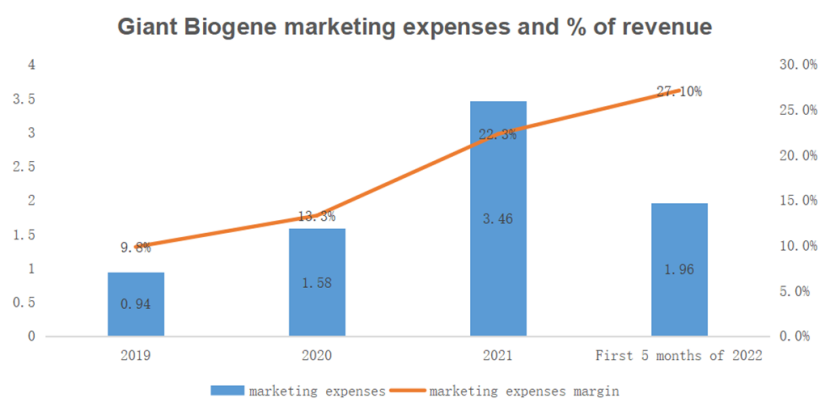 In 2021, Giant Bio invested $346 million in marketing, a 119% year-over-year jump,which ismuch higher than the 30% revenue growth rate.