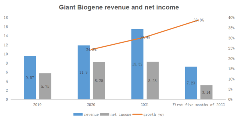 In 2021, Giant Biogene's revenuereached $1.55 billion, up 30% year-on-year; net profit was up to 830 million with net profit margin over 53%: