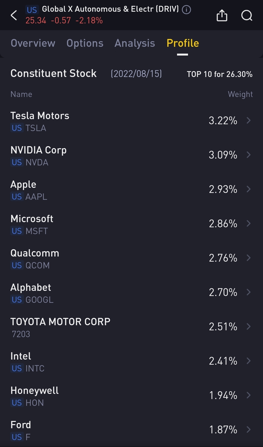 $Global X Autonomous & Electric Vehicles ETF(DRIV)$top 10 holdings of global X EV etf. With Biden recently passed massive climate change bill of estimate of $400 billion climate change bill ; EVs vehicles based in the US will benefit ? What ya all think ? [Cool] $SPDR S&P 500 ETF Trust(SPY)$Bullish$NIO Inc.(NIO)$$Tesla Motors(TSLA)$$Nasdaq 100 ETF(QQQ)$