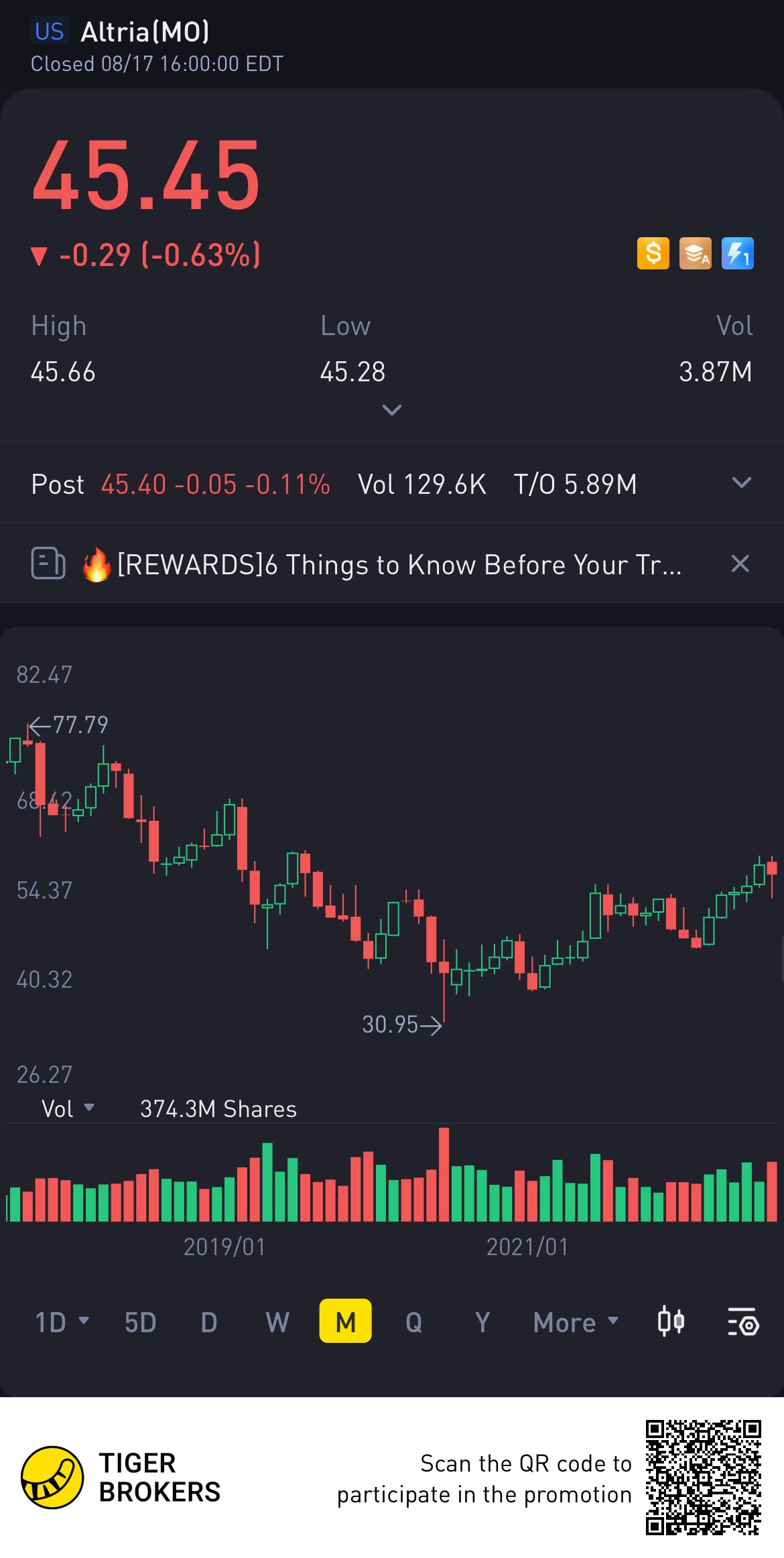 $Altria(MO)$Is altria a good investment? My pov would be that dividend payout is consistent and increasing. Financials looks alright. Although inflation is high ny inelastic demand for the product would allow altria to be in the game much longer. What are your thoughts?