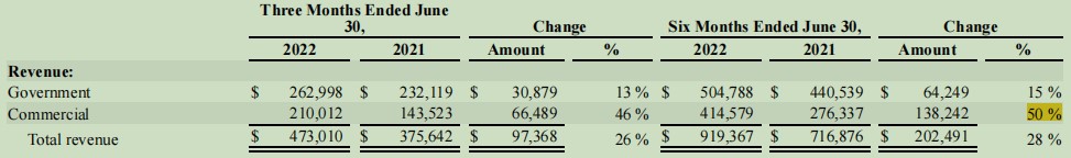 Growing revenue from commercial segment though government segment revenue growth is slowing down.