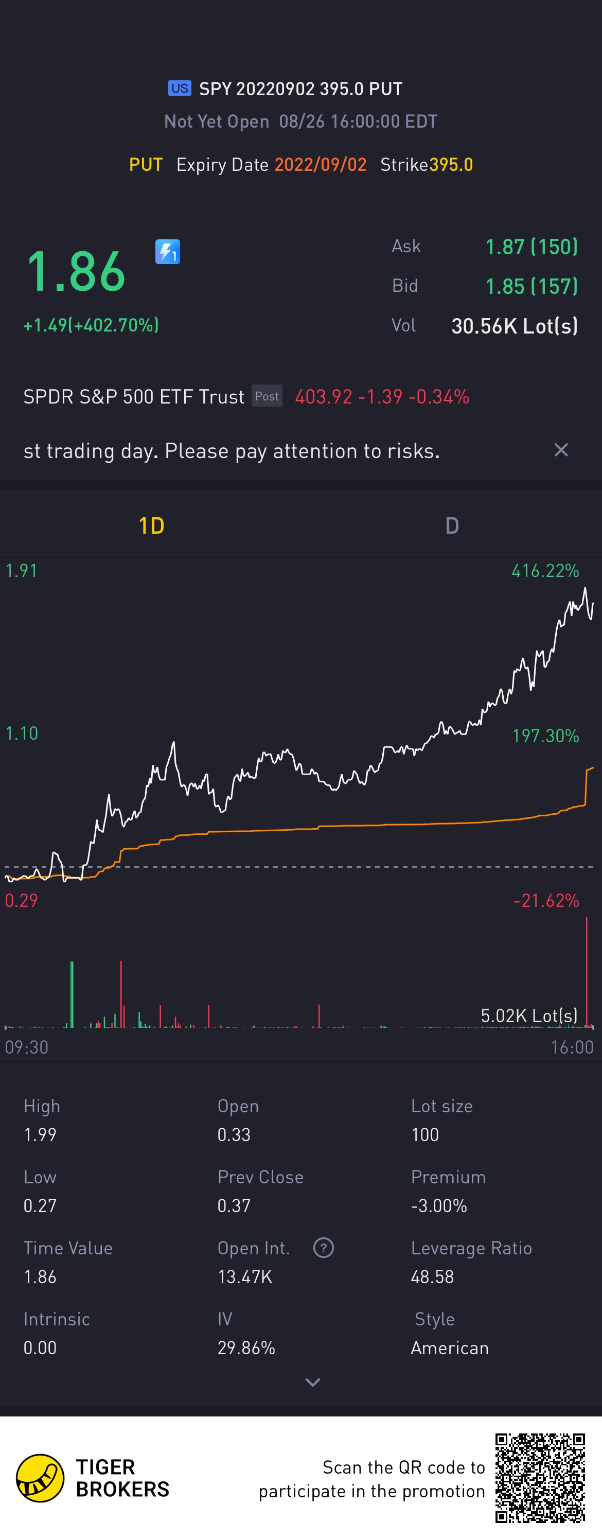 $SPY 20220902 395.0 PUT$hitting this put hard on this trading session đđ