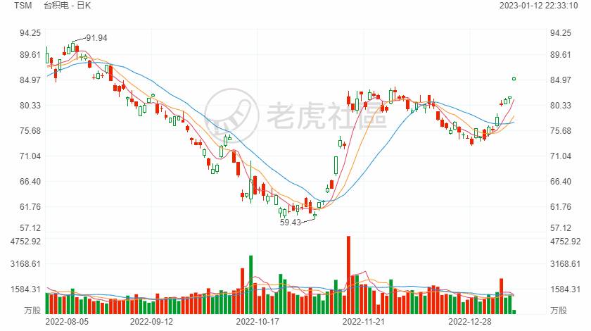 台积电涨超4%。2022年,台积电营收创下2.263万亿元新台币的纪录,同比增长42.6%。而利润增长逾70%,达到1.016万亿元新台币,同样创历史新高。