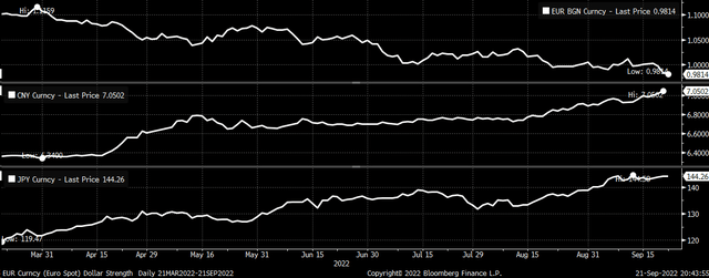 The higher rates will help strengthen the dollar index, especially against Japan and China, which are clearly in much easier monetary policy positions. Additionally, with Europe's energy crisis and on the brink of recession, the dollar is likely to strengthen further against the euro.