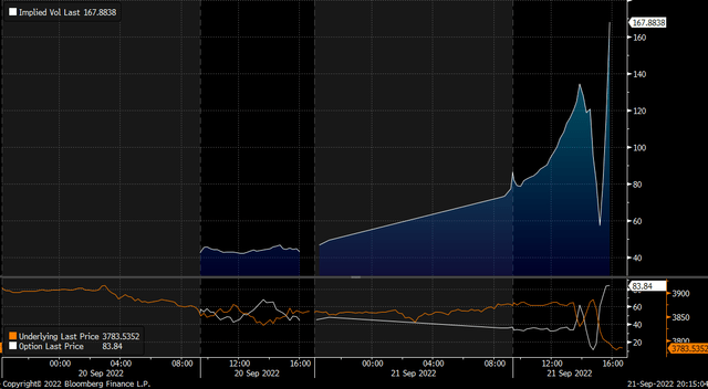 Of course, the equity market tried to play its implied volatility melt in the middle of the trading session game, with the S&P 500 managing to rally by more than 2% off its post-FOMC lows. But still, what became clear was that sellers were in the market, and they could offset that usually implied volatility melt and sink stocks.