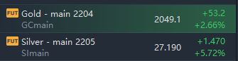 Gold soared over 2% to $2049.1 an ounce; silver jumped over 5%.