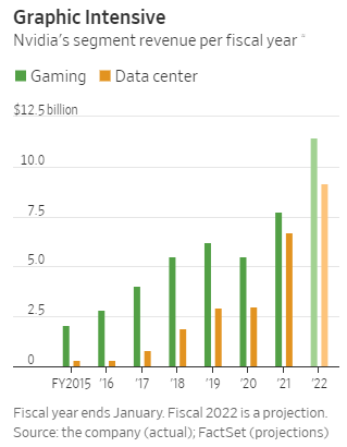 Strength in Nvidia’s main businesses should better contain any risk from crypto exposure this time around. Its gaming chip revenue has grown 66% since the fiscal year ended January of 2020, which bore the brunt of the impact of the last ethereum spike, while its data center unit has more than doubled. The two are on track to do a little over $20 billion in combined revenue for the current fiscal year—up 43% from the previous year.