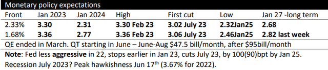 4) The market is now pricing that the Fed would start cutting interest rates in July of 2023, which indicates the expectations of a possible recession in 2023. Here are the current monetary policy expectations, based on Global Academic View report: