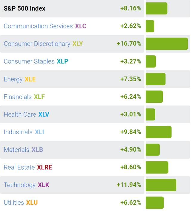 Over the last month, SPY, which is the ETF that tracks S&P500, is up by 8.16%, led by Consumer Discretionary sector (XLY) up by 16.7% and Technology (XLK) up by 12%. Both of these are cyclical sectors that have bounced from the deep sell-offs, but given the expectations of an imminent recession, the performance of these sectors is unsustainable. It is likely that the recent performance is just a bounce, meaning, as the economy starts to visibly slow down, these cyclical sectors are more likely to continue to sell off, dragging the SPY to the next leg lower.