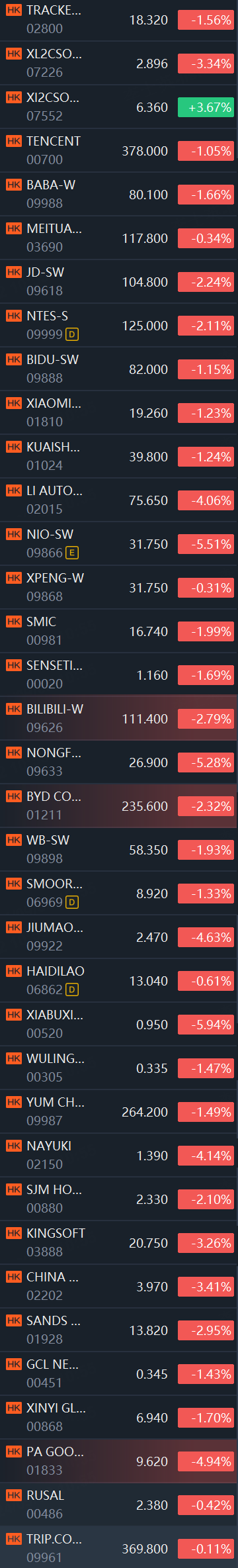 The Hang Seng Index fell 1.6 per cent to 17,703.54 as of 10.50am local time. The Hang Seng Tech Index dropped 1.8 per cent, and the Shanghai Composite Index retreated 0.6 per cent.