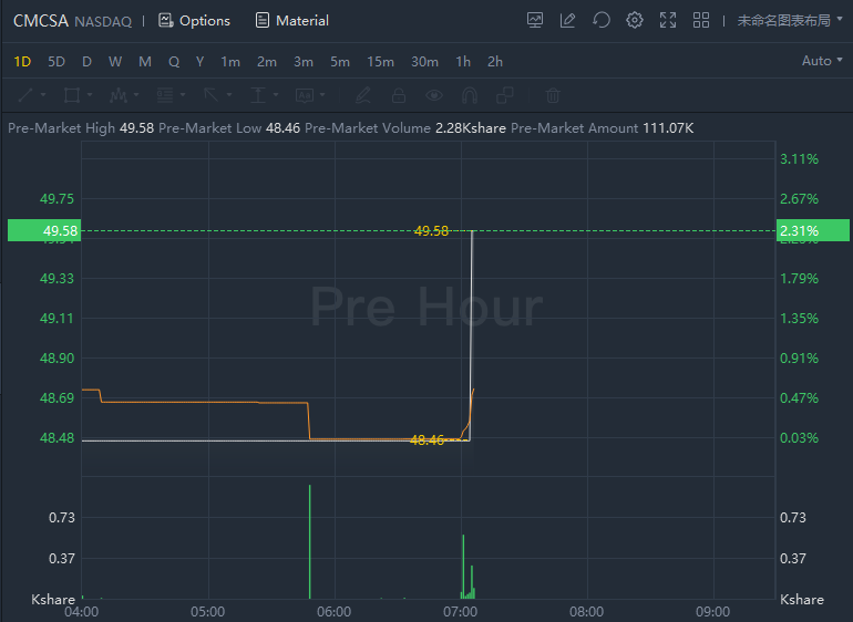 Comcast rose over 2% in premarket trading after posting its financial result.