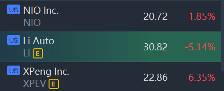 XPeng and NIO shares slid 6.35% and 1.85% respectively in morning trading.
