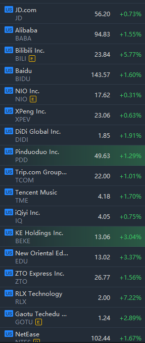Hot Chinese ADRs jumped in morning trading. Alibaba, Pinduoduo, Baidu, Bilibili, DiDi, Ke Holding, and RLX Technology climbed between 1% and 7%.