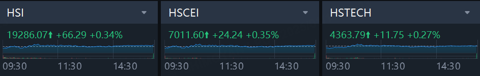 Hong Kong stock market closed higher. The Hang Seng Index rose by 0.34%, the Hang Seng China Enterprises Index increased by 0.35%, and the Hang Seng Tech Index went up by 0.27%.