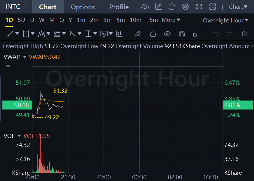 Shares of Intel jumped 2.81% in overnight trading on the news.