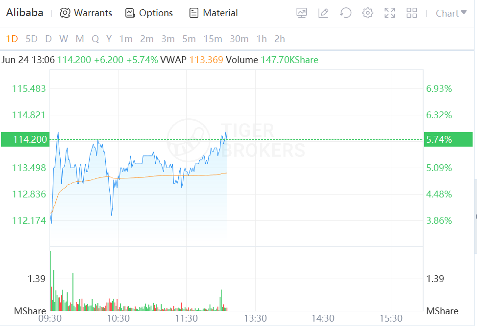Shares of major U.S.-listed Chinese companies inched higher in Hong Kong on Friday, with Alibaba Group Holdings stock surging 5.74%, other tech giants like Tencent Holdings, Baidu Inc, and JD.com IncJ gaining at least a percent.