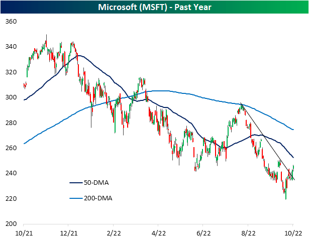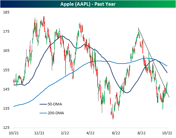 Turning to the individual FAANG stocks' charts, Microsoft (MSFT) and Apple (AAPL), which as we discussed in today's Chart of the Day, are scheduled to report on Tuesday and Thursday, respectively, have begun to break out of their summer/fall downtrends. While that is a positive development, at least in the near term, there is still resistance ahead at each stock's moving averages. With the potential catalysts of earnings, later this week, we should have a better idea of whether or not those breakouts are pump fakes or the start of something more material.