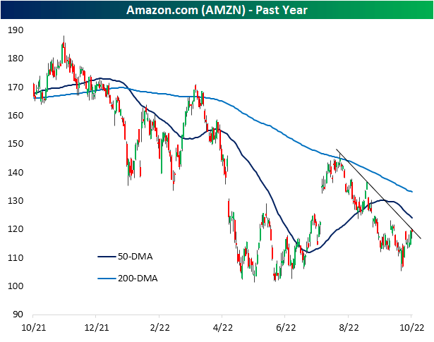 While those mega-cap moves have been promising to a degree, Amazon (AMZN) has been met with the opposite fate. AMZN likewise attempted to break out of the past few months' downtrend in the past few days, but today, it has met resistance.