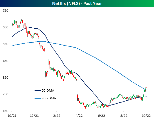 As for another FAANG member that has already reported, Netflix's (NFLX) recent chart developments have been even more constructive. After a double-digit percentage jump in response to stronger-than-expected subscriber growth last week, NFLX has moved above both its 50 and 200-DMAs and is now filling the massive gap down from its April earnings report when it declined 35% in a single day. Of course, there is plenty of progress left to be made to erase the massive declines of the past year, but the move higher this earnings season has been a welcome relief.