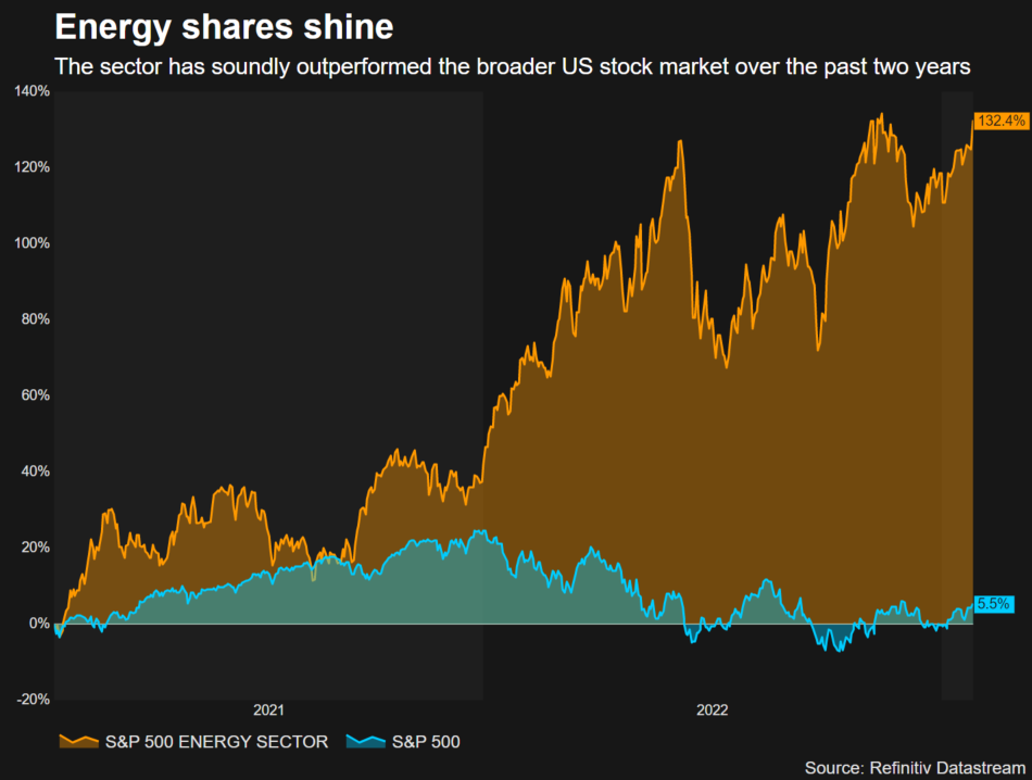 The S&P 500 energy sector(.SPNY)is up 4.2% year-to-date, slightly lagging the rise for the broader index(.SPX). The sector logged a 59% jump in 2022, an otherwise brutal year for stocks that saw the S&P 500 drop 19.4%.