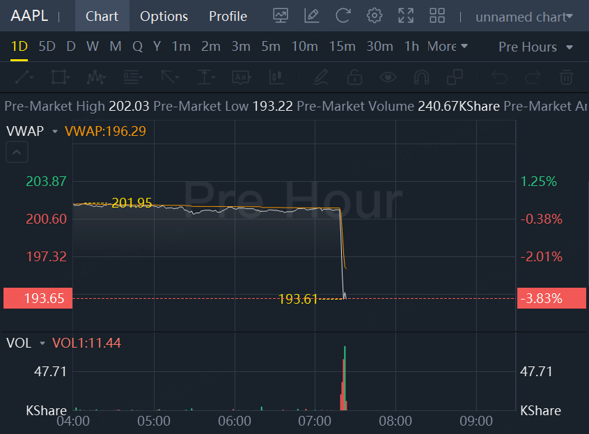 Shares of the iPhone maker fell nearly 4% on the news in premarket trading.