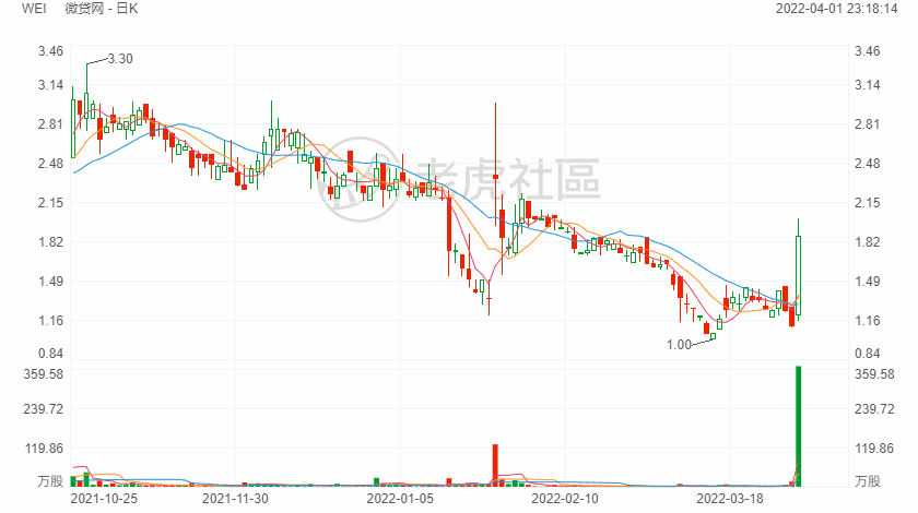 4月1日(周五),微贷网股价走高,截止发稿,该股涨超70%。