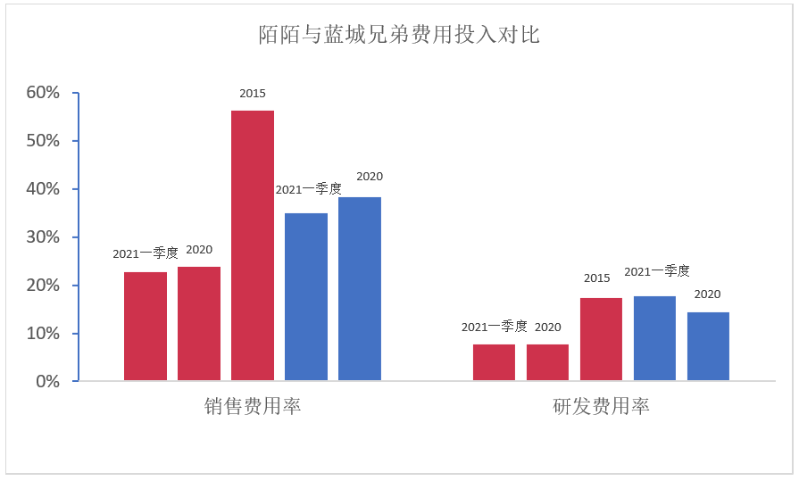 从费用的投入产出来看,当前蓝城兄弟的销售投入比例低于2015年的陌陌,研发投入比例与2015年的陌陌相当,却并没有像陌陌在2015年时一样,实现盈利,更不用和现在的陌陌的低投入高回报相比了。