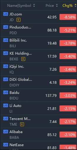 Hot Chinese ADRs crashed in morning trading; JD.com fell over 8% while Pinduoduo Inc. slid over 5%.