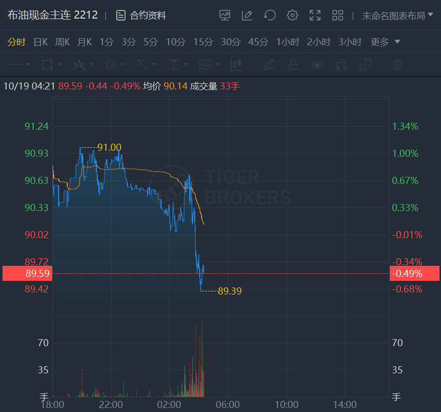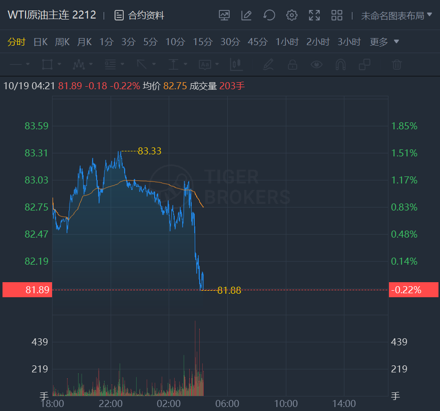 原油期货短线走低,截止发稿,WTI原油报81.89美元/桶,跌0.22%;布油现报89.59美元/桶,跌0.49%。