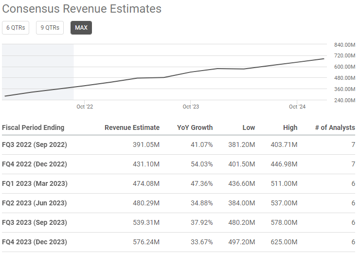 Analyst revenue estimates for SoFi (Seeking Alpha)